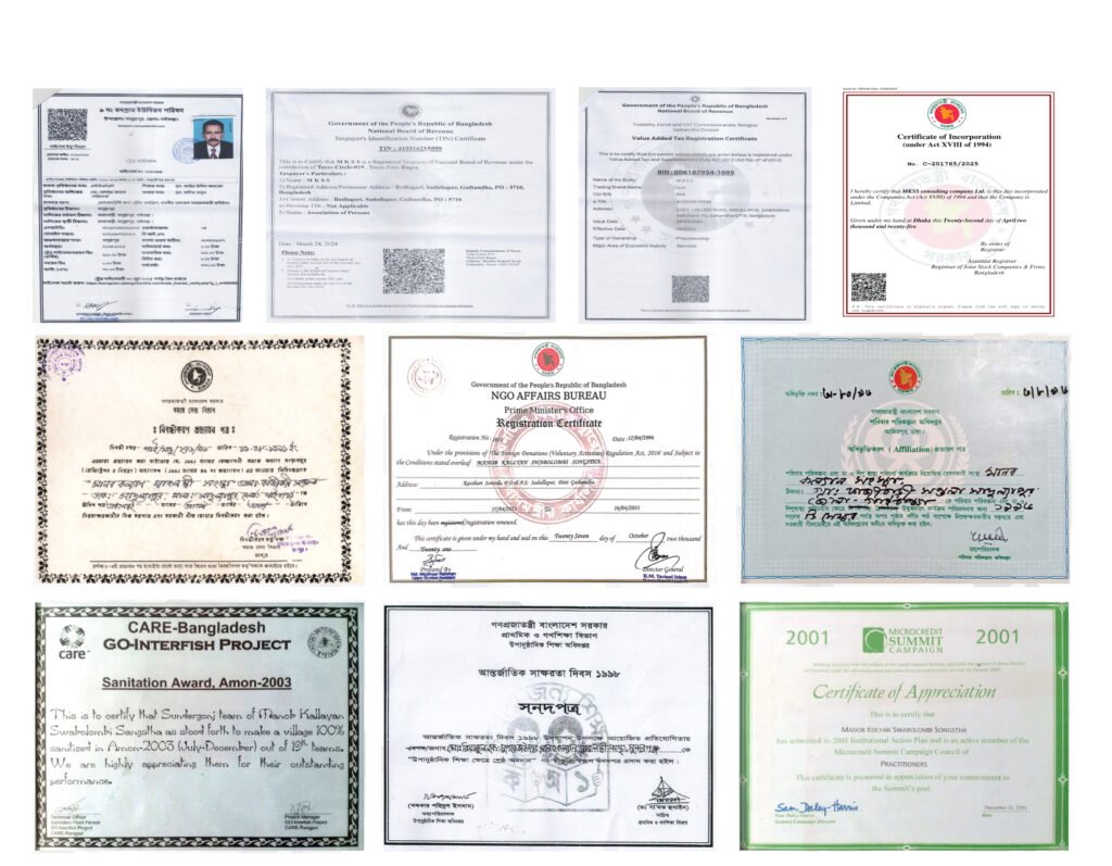 MKSS is a consultancy firm and supplier organization. It is one of the key associate organizations of Manob Kollayan Sabolombi Songstha, which is registered with the NGO Affairs Bureau of the Government of Bangladesh. As a trusted partner, MKSS has been operating nationwide.